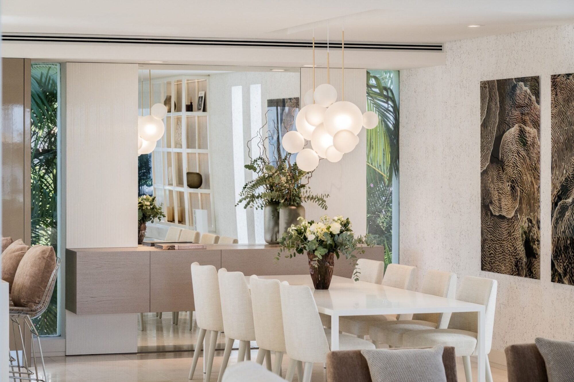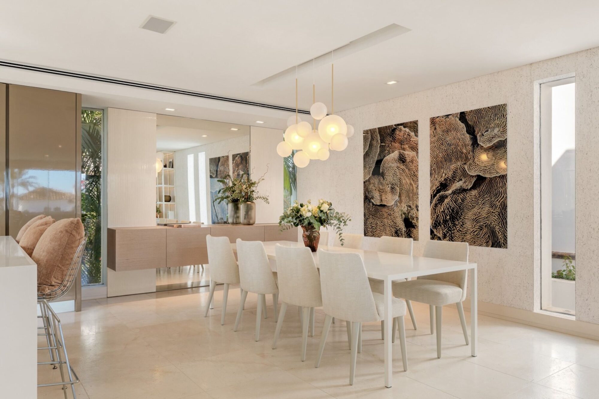 Every element of the villa showcases high-end materials, minimalist elegance, and refined interior styling. The open-plan layout creates a fluid connection between the living room, dining area, and kitchen, enhancing both functionality and visual harmony. Expansive windows and thoughtful spatial planning ensure that sunlight filters beautifully throughout the home.