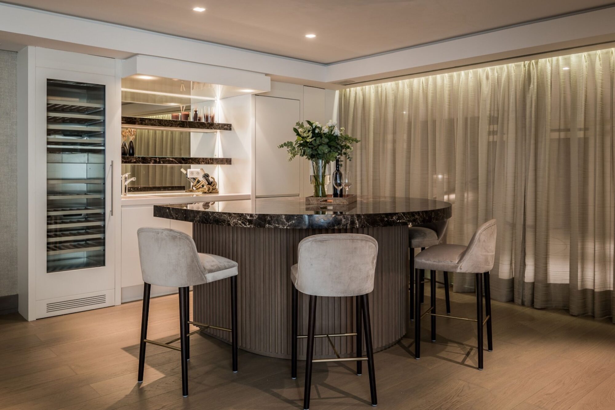 Innovation plays a central role in the property’s identity. Equipped with state-of-the-art energy-saving systems and a comprehensive home automation setup, the villa allows seamless control of lighting, climate, security, and entertainment. Integrated high-tech music and home cinema systems further elevate the living experience.