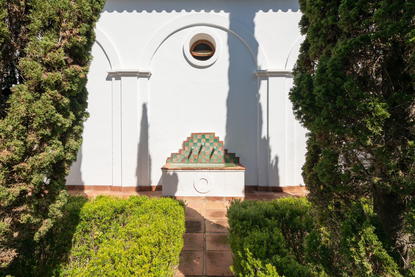 Designed in a modern Cortijo style, the residence combines traditional Spanish charm with state-of-the-art amenities, surrounded by meticulously landscaped gardens, tranquil fountains, and intricately shaped hedges. A private tree-lined driveway leads to a majestic central courtyard that sets the tone for the elegant interiors.