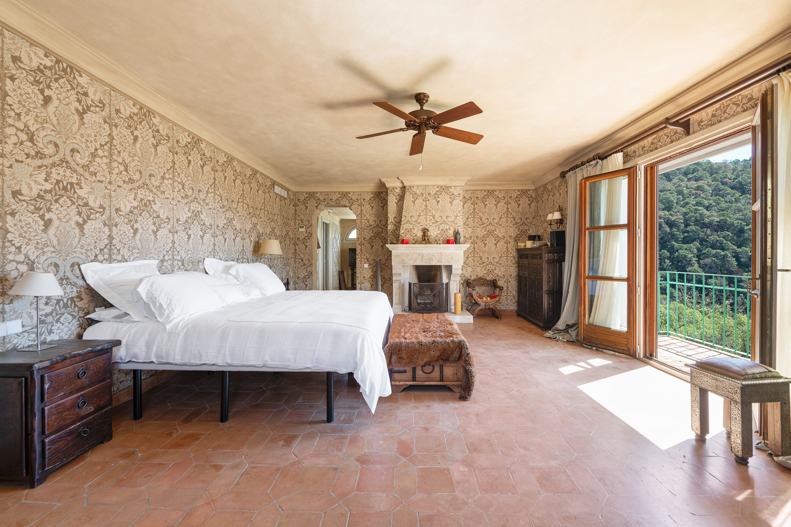 The upper level hosts a lavish master suite with its own private terrace, while the lower floor includes additional guest suites, a private studio, and a full staff apartment, offering space and flexibility for extended stays or large families.