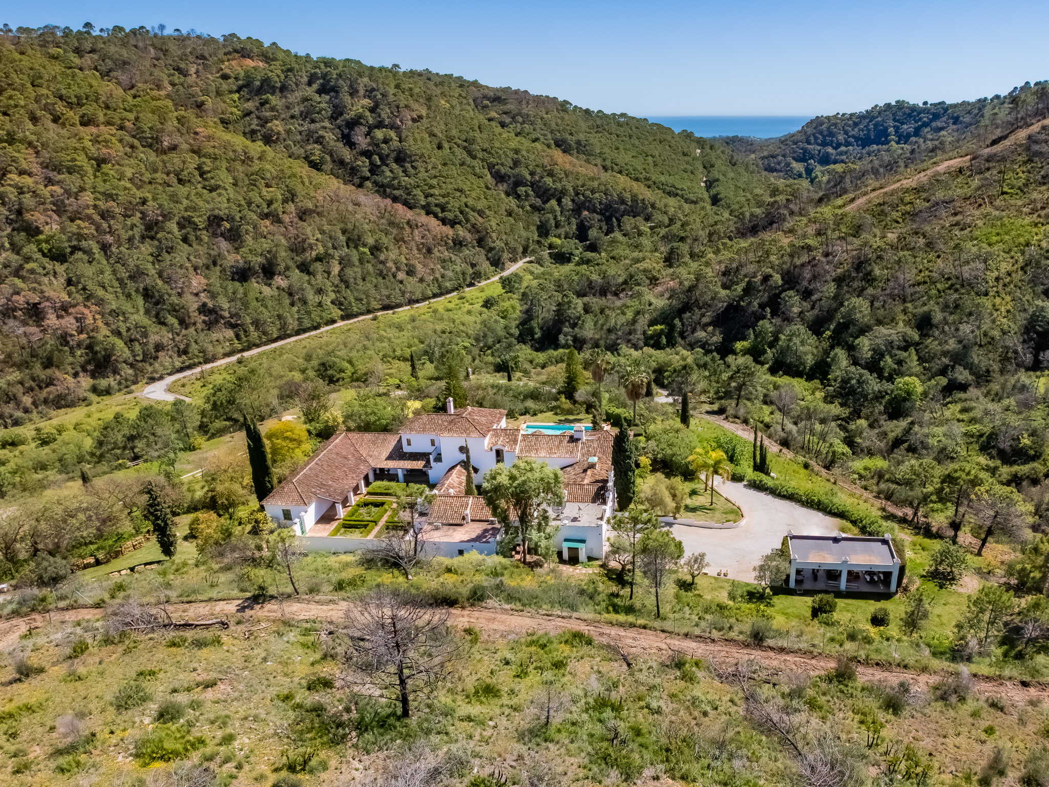 Nestled between Estepona and Marbella, this exceptional Spanish country estate offers unrivaled privacy, space, and luxury, set on an impressive 60 hectares of lush countryside with panoramic views of the Sierra Bermeja mountains and glimpses of the sea.