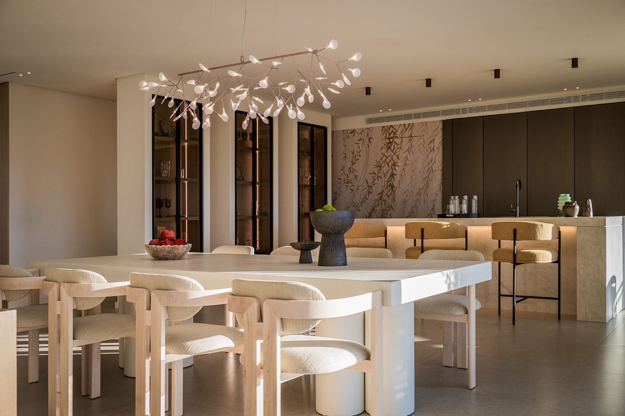 The villa’s rooftop terrace elevates the entertainment experience to another level. This exceptional space includes a fully equipped outdoor kitchen, generous dining and seating areas, a jacuzzi and a private outdoor cinema. From here, residents can enjoy breathtaking sunset views across the golf course and surrounding valley, making it an ideal setting for hosting guests or relaxing in complete privacy.