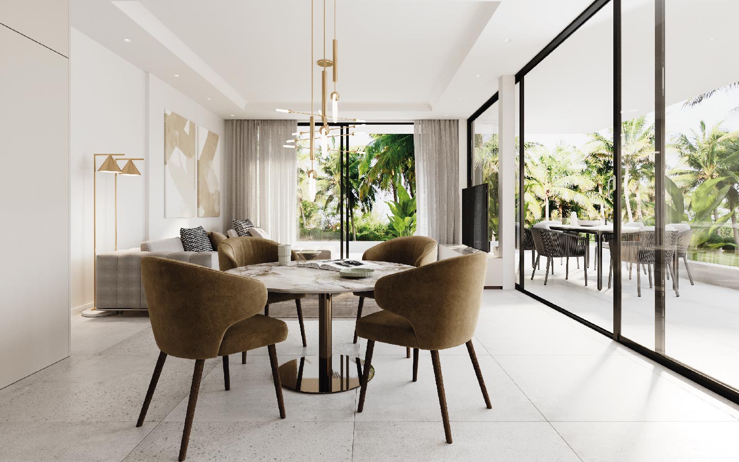 The interiors are designed for modern living and total comfort. Each villa includes a fully fitted contemporary kitchen, private gym, game room, cinema room, storage, and laundry facilities. High-end finishes and a sleek, minimalist aesthetic give these homes a fresh, luxurious appeal.
