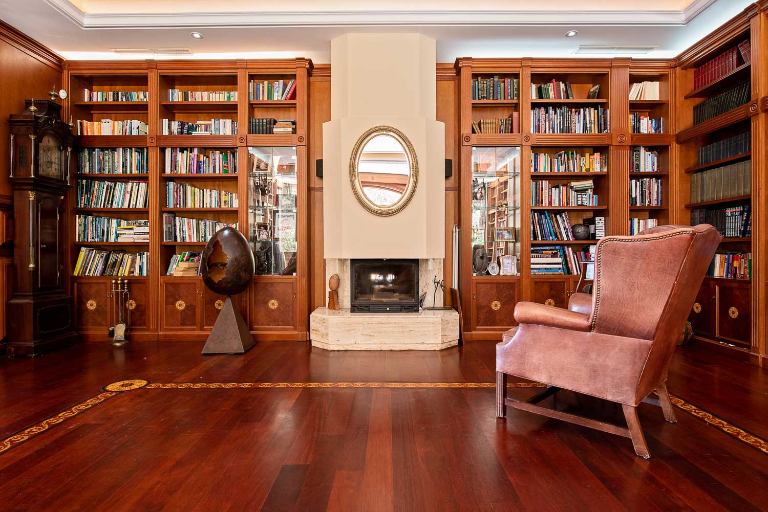 Inside, the villa is a haven of wellness and entertainment, boasting an indoor spa with a pool, sauna, hammam, gym, and changing area. Leisure continues with a cinema room and bar, a snooker room, a dedicated music practice space, and a temperature-controlled wine cellar.