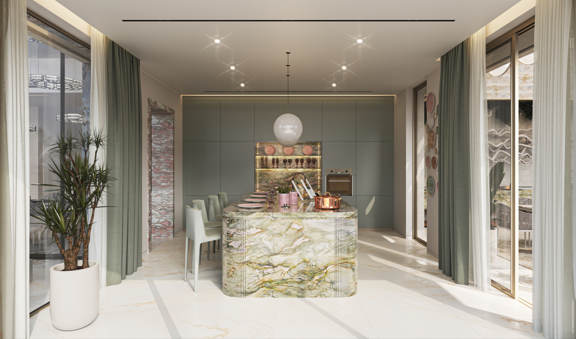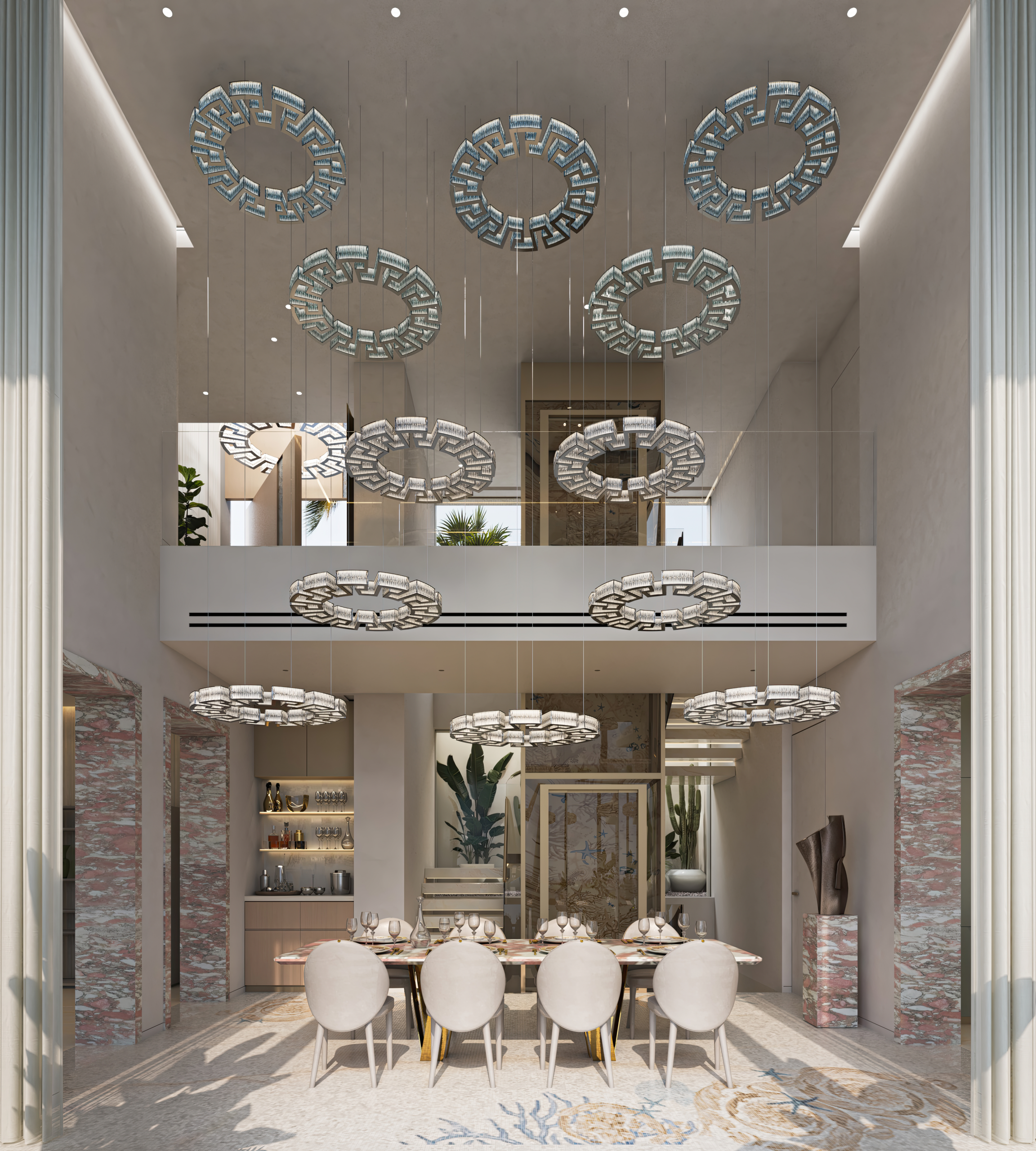 The architecture emphasises scale, light, and flow. Double-height living areas open into expansive open-plan spaces adorned with premium Italian marble and Rosenthal ceramics. Floor-to-ceiling glazing frames panoramic views while allowing natural light to define the interiors throughout the day. These homes are designed not only to impress visually, but to deliver an exceptional living experience rooted in comfort and functionality.
