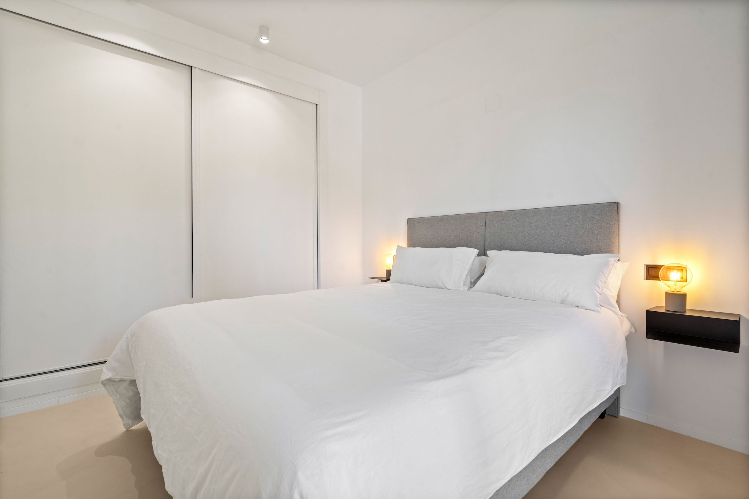 Inside, the 119m² of interior space has been reimagined with style and functionality in mind. A sleek open-plan layout links the fully equipped contemporary kitchen to the bright living and dining areas. Mortex microcement flooring runs throughout the home, adding a cohesive and modern finish.