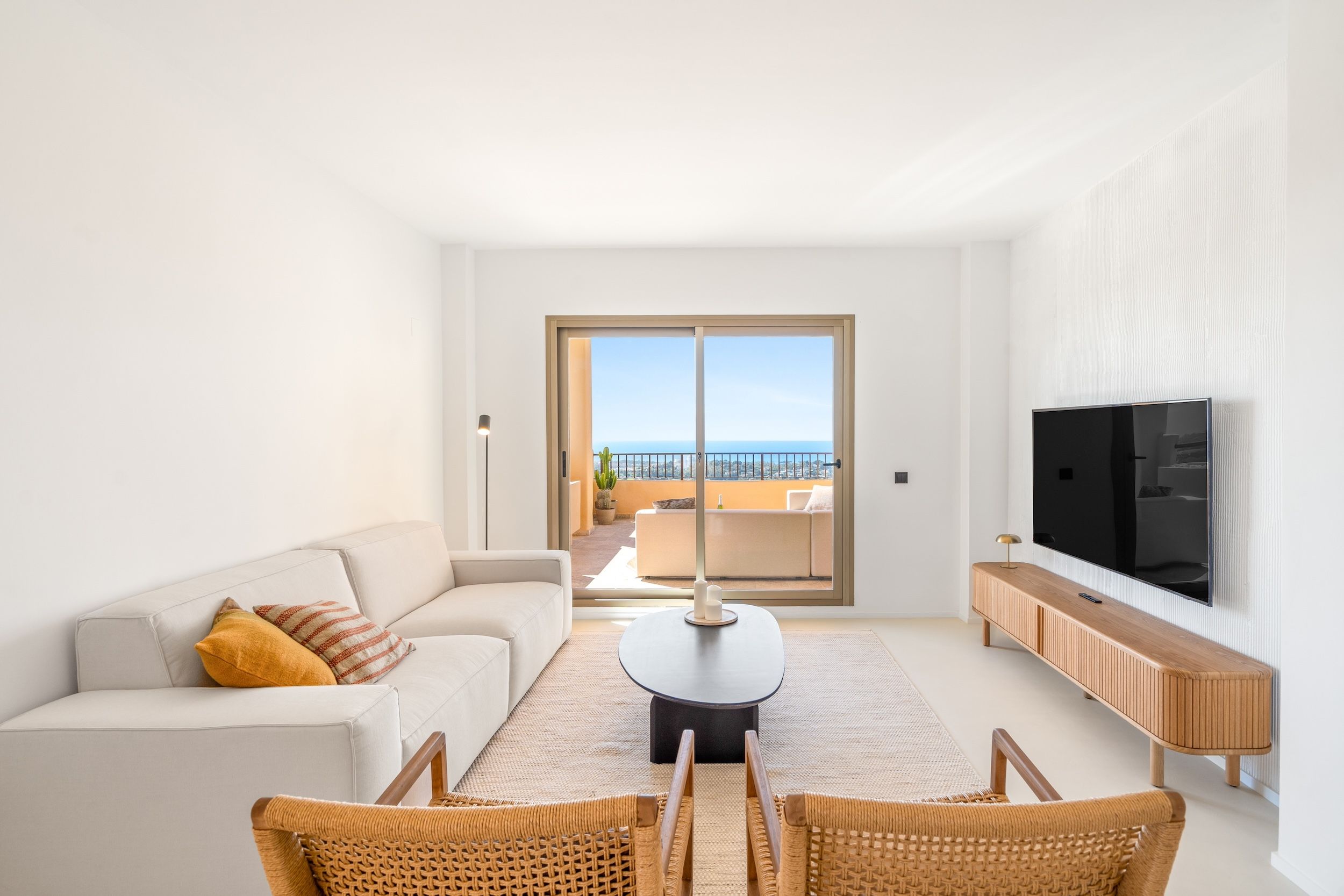 This newly renovated corner apartment offers one of the most striking panoramic vistas in all of Marbella and Benahavis. From sunrise to sunset, soak in sweeping views of La Concha Mountain, the coastline, and the lush golf valley below—all from the comfort of your private terraces.