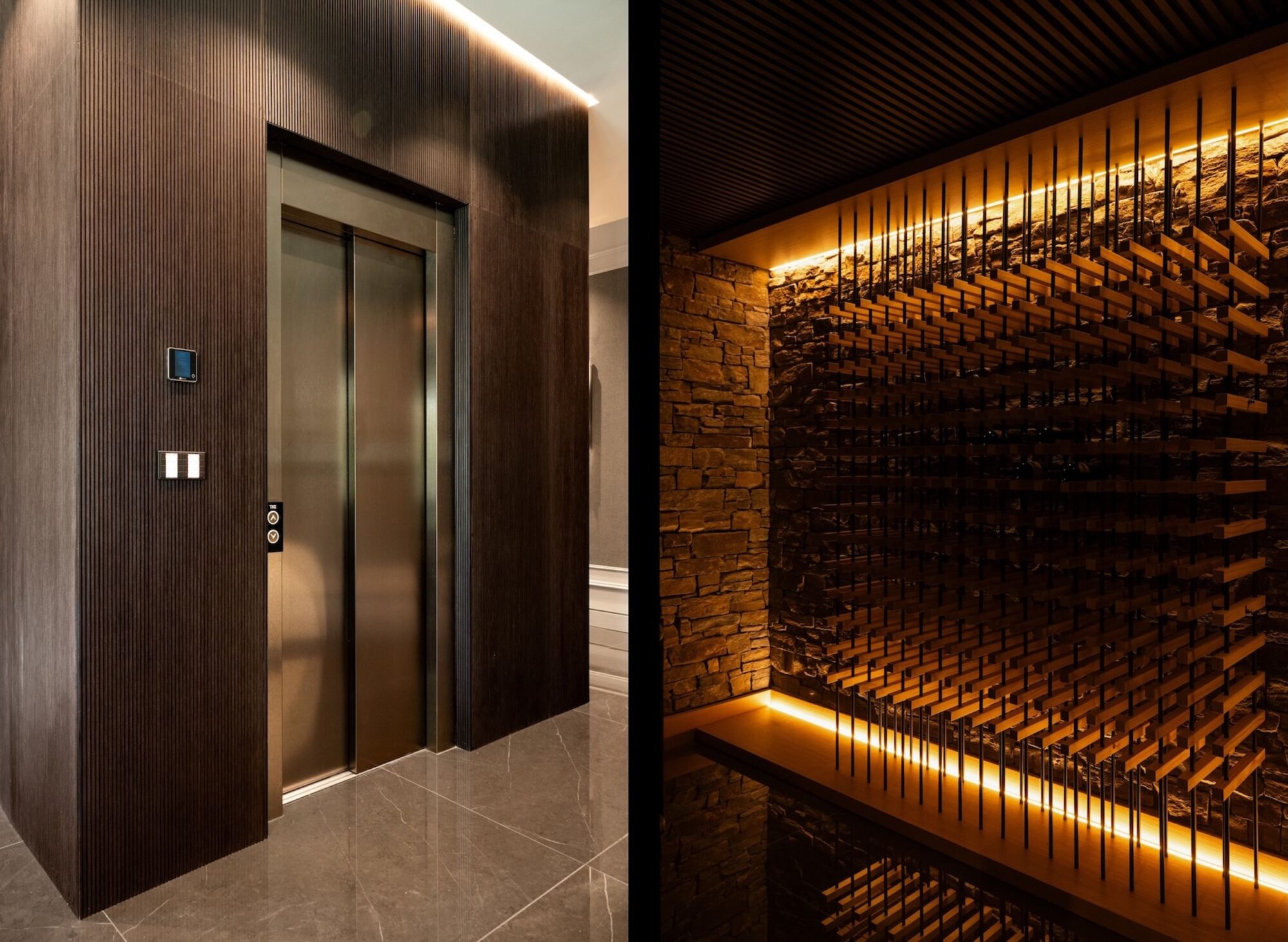 All levels are serviced by a sleek champagne-gold lift, ensuring comfort and accessibility throughout.