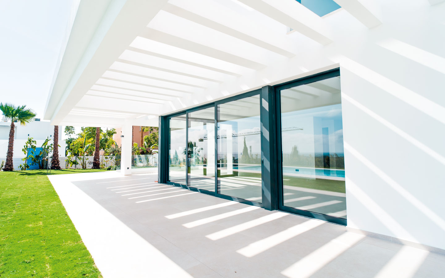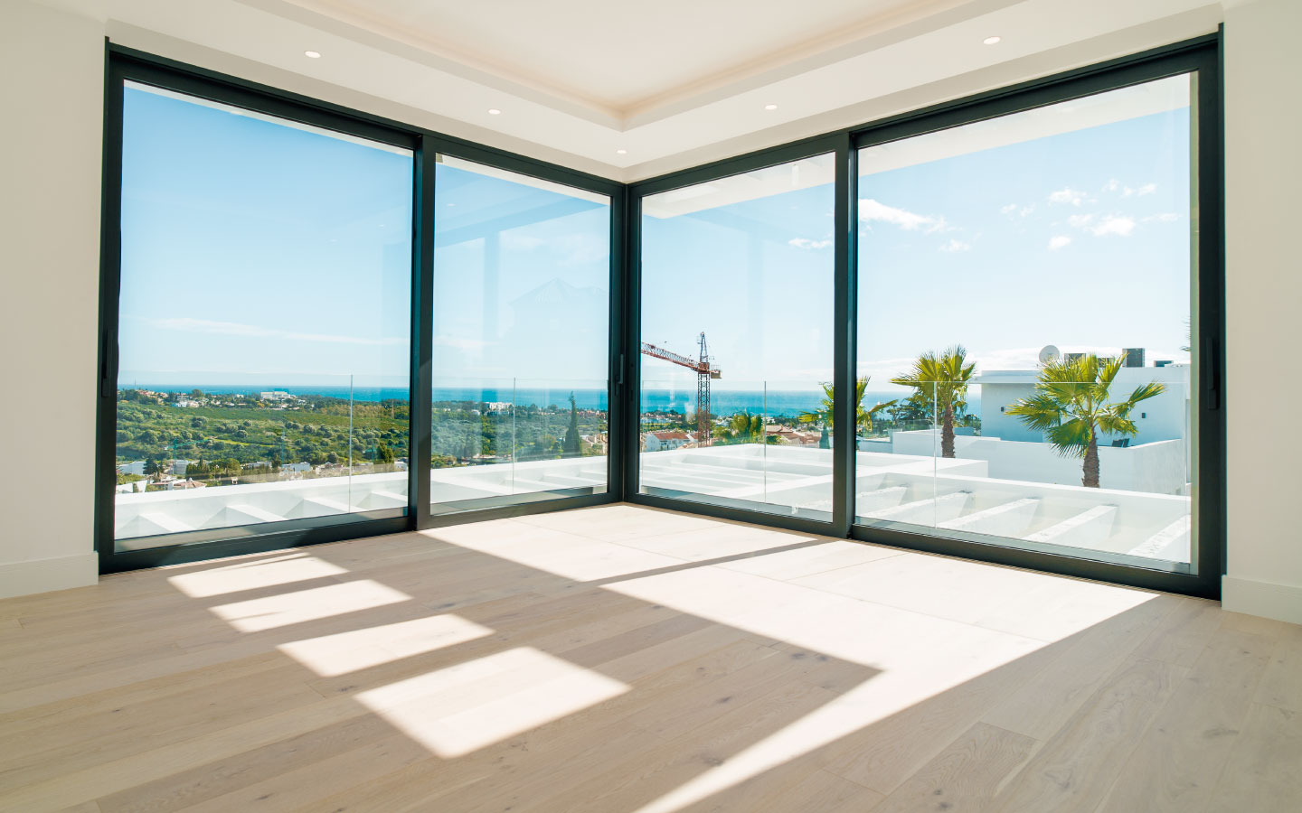 From the moment you arrive, you’re greeted by striking contemporary lines, expansive glass façades, and sweeping views of the golf course, coastline, and the sparkling Mediterranean Sea. The interior is equally impressive, featuring spacious open-plan living areas, top-quality finishes, and cutting-edge amenities designed for both entertaining and relaxing in style.